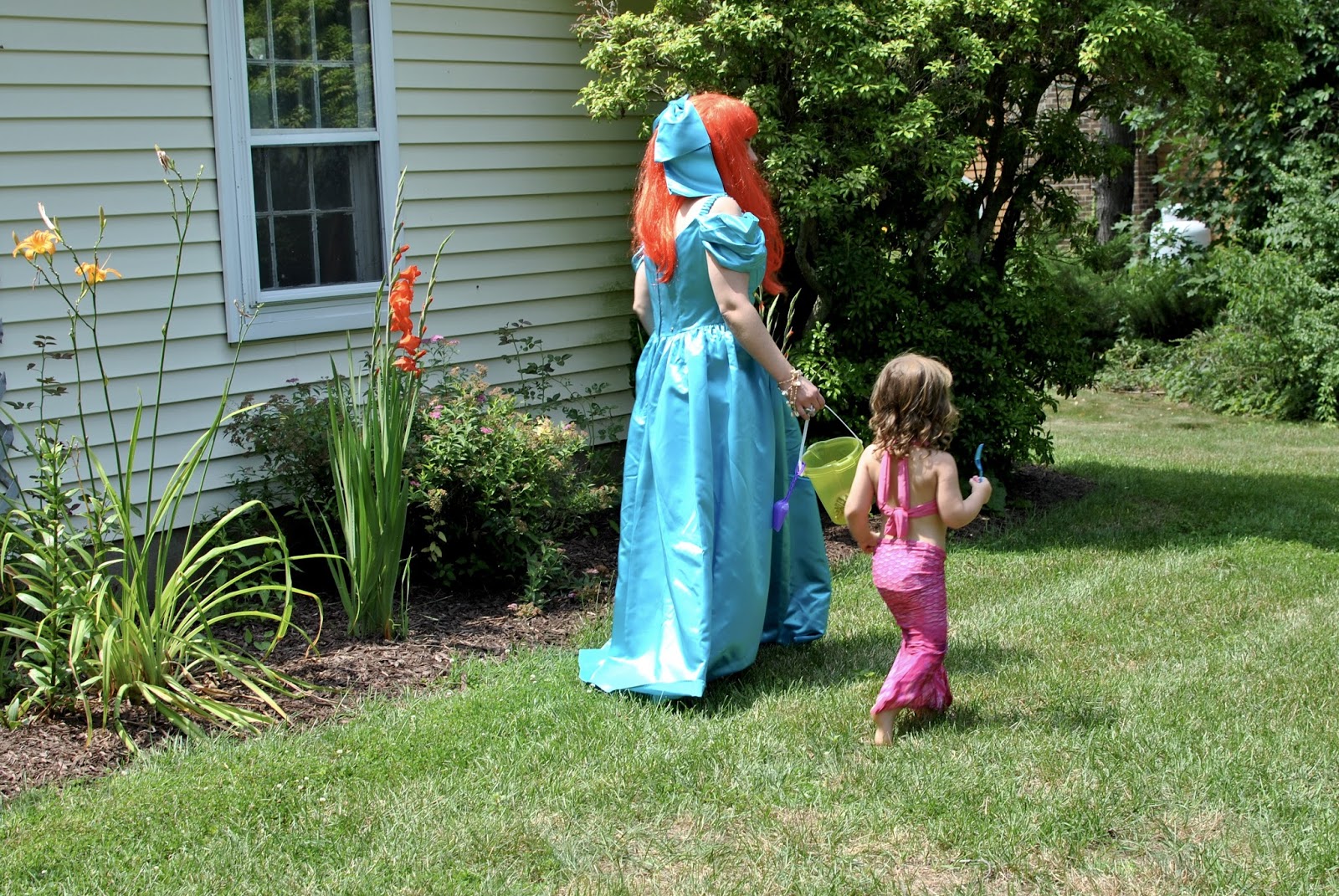 I seriously cannot believe that Ainsley is 3 years old! She is one of the smartest and most entertaining little girls I know. Her name, which means, "ones own meadow" could not have been more adeptly chosen for her. Ainsley is most in her element when frolicking through open fields or rolling around in the grass. She prefers to be a leader, not a follower (which can be a bit of a challenge when she's leading her parents around). She's quite shy, but quite the performer. Ballgowns, sparkly shoes, and jewelry are not just for play, they are her daily attire. Grand gestures are not just for acting, they are for talking. Books are not just for listening, they are for memorizing. Ainsley memorizes every book she likes, regardless of how long it is. At 2.5 years old she was "reading" Sofia and the Floating Palace to US. And thus came the idea for an Ariel themed birthday party.